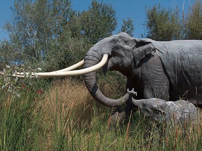 Både Homo heidelbergensis och hennes europeiska syster Homo antecessor jagade och fällde gärna djur av den numera utdöda elefantarten Elephas antiquus. Den hade raka betar. Den härstammade från den indiska elefanten. Rekonstruerad bild av Apotea i Wikipedia.